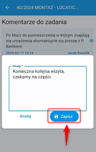 - W aplikacji mobilnej w trybie edycji zadania kliknij przycisk „+” na liście urządzeń, wybierz opcję z szablonu i uzupełnij brakujące dane.
