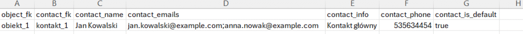 Aby wybrać domyślny kontakt obiektu należy nacisnąć wskazany poniżej checkbox przy wierszu z danymi odpowiedniego kontaktu.