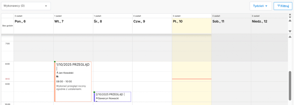 • Przeniesienie filtra "Wykonawcy" do głównego widoku kalendarza