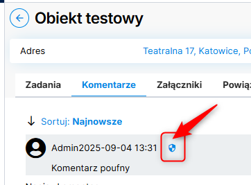 • widoczne na liście zadań (Zadania > Lista zadań, zakładka Kontakty obiektu),