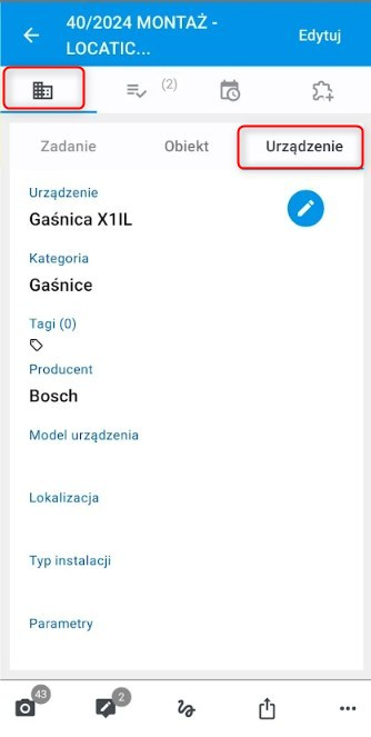 • Zadanie – szczegóły dotyczące zadania,miejsca i urządzenia