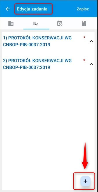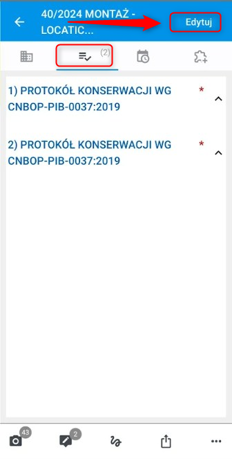 W zakładce protokoły (2) – znajdują się wszystkie protokoły które są przypisane do tego konkretnego zadania. To tutaj należy wypełnić protokoły. Aby wypełnić protokół przypisany do zadania kliknij ,,edytuj,,