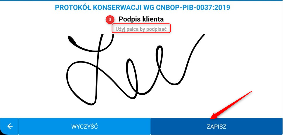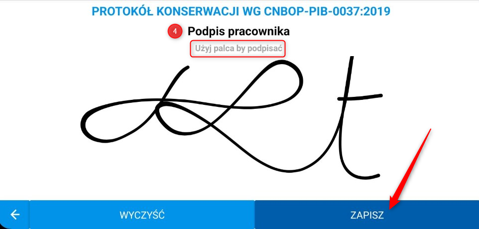Tak wypełniony protokół możesz podpisać korzystając z przycisku podpis znajdującego się na dole ekranu.