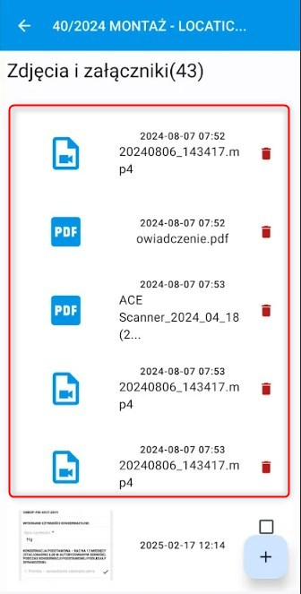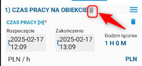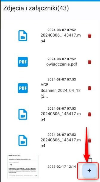 Aby usunąć dodany załącznik lub zdjęcie, kliknij ikonę kosza obok wybranego pliku.