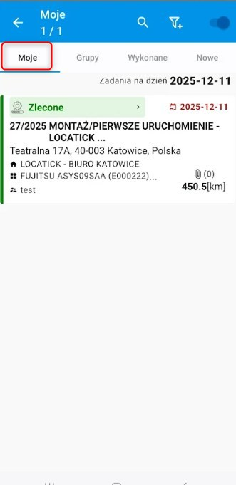 • Moje –  wszystkie zadania przypisane do użytkownika