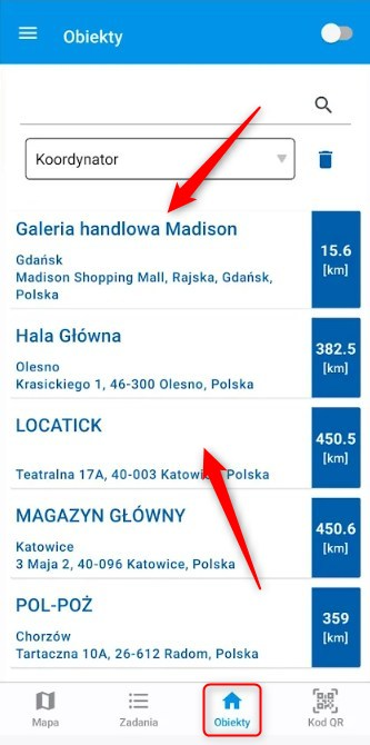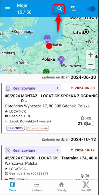 • Wyszukiwanie zadań na mapie