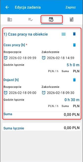 Funkcja automatycznie uzupełnia czas pracy na podstawie statusów zadania: